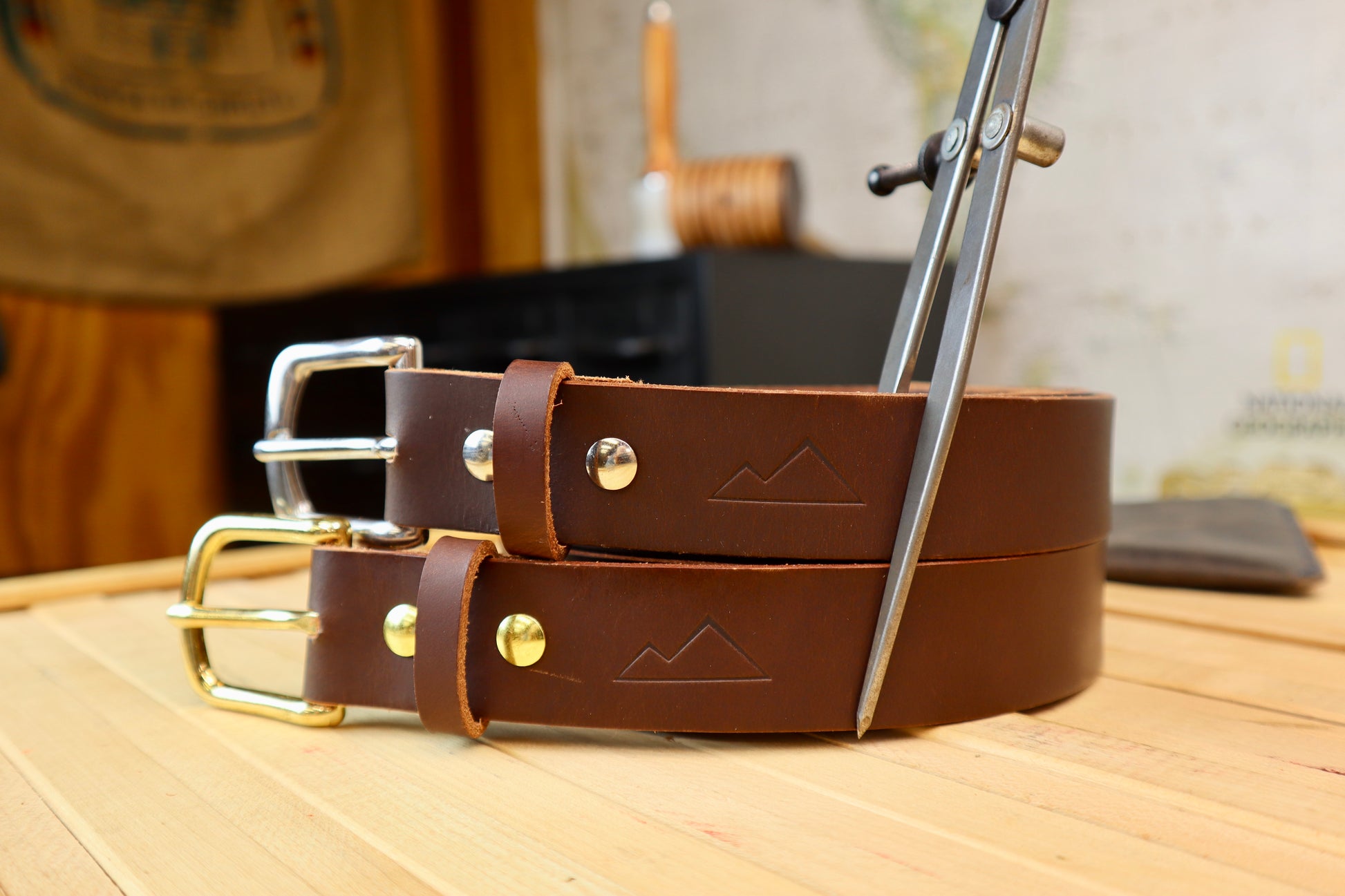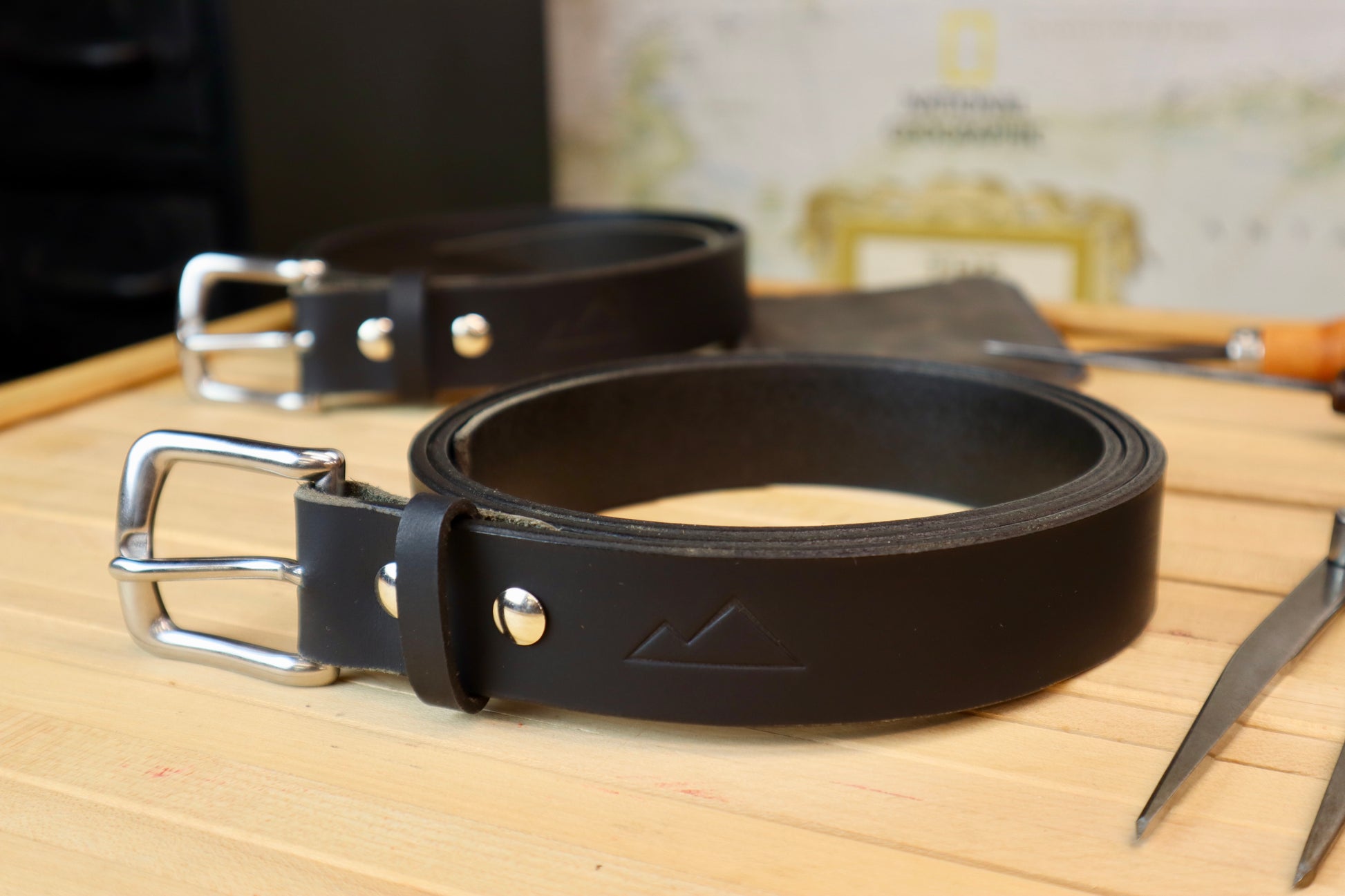 And there are two width options. 1.25" is usually more business casual, and 1.5" is usually more of a work belt width.